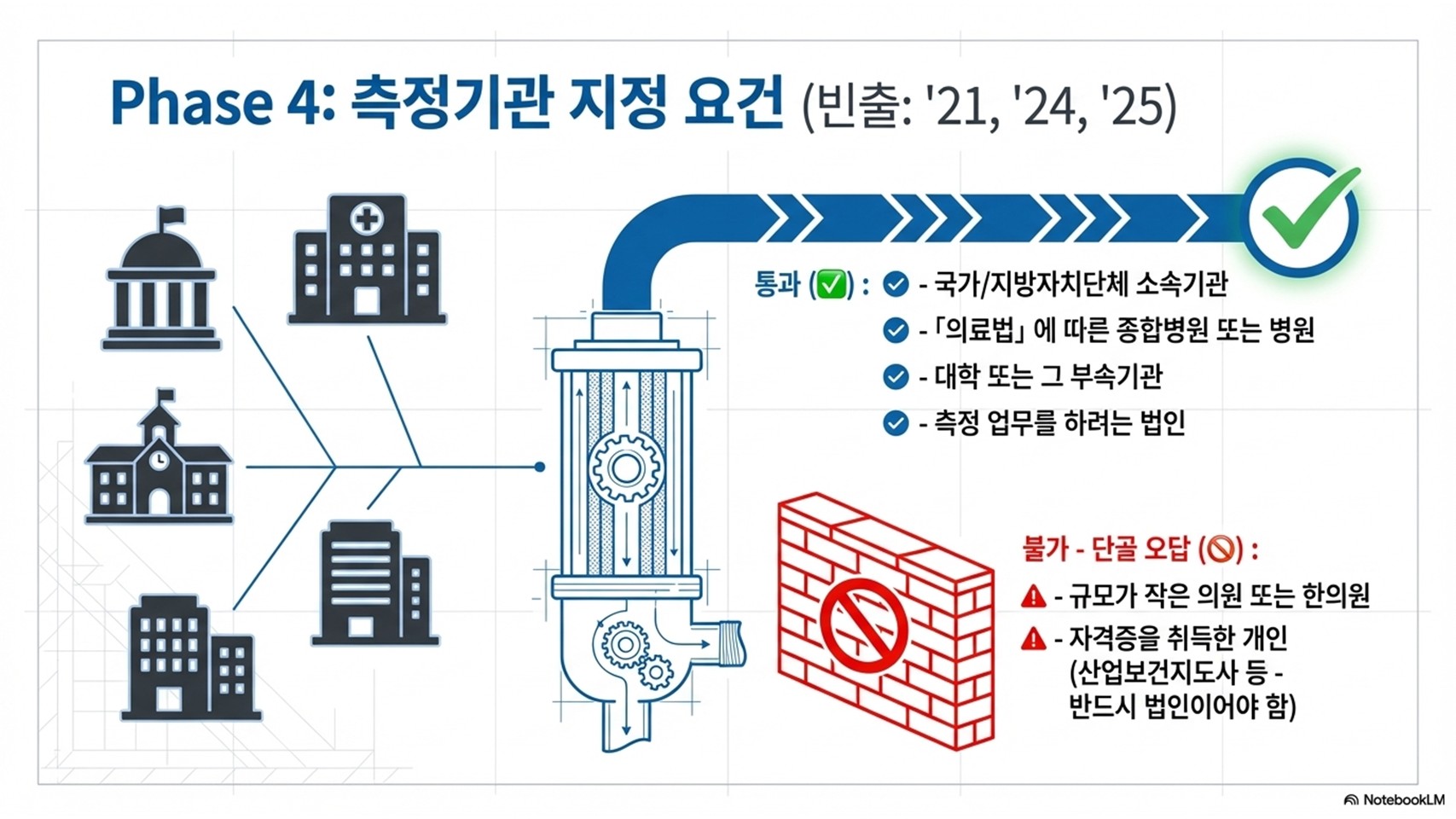 측정기관의 자격 요건은 단독 문제로 출제될 확률이 매우 높습니다. 자격이 되는 기관과 되지 않는 기관을 날카롭게 구분하십시오.