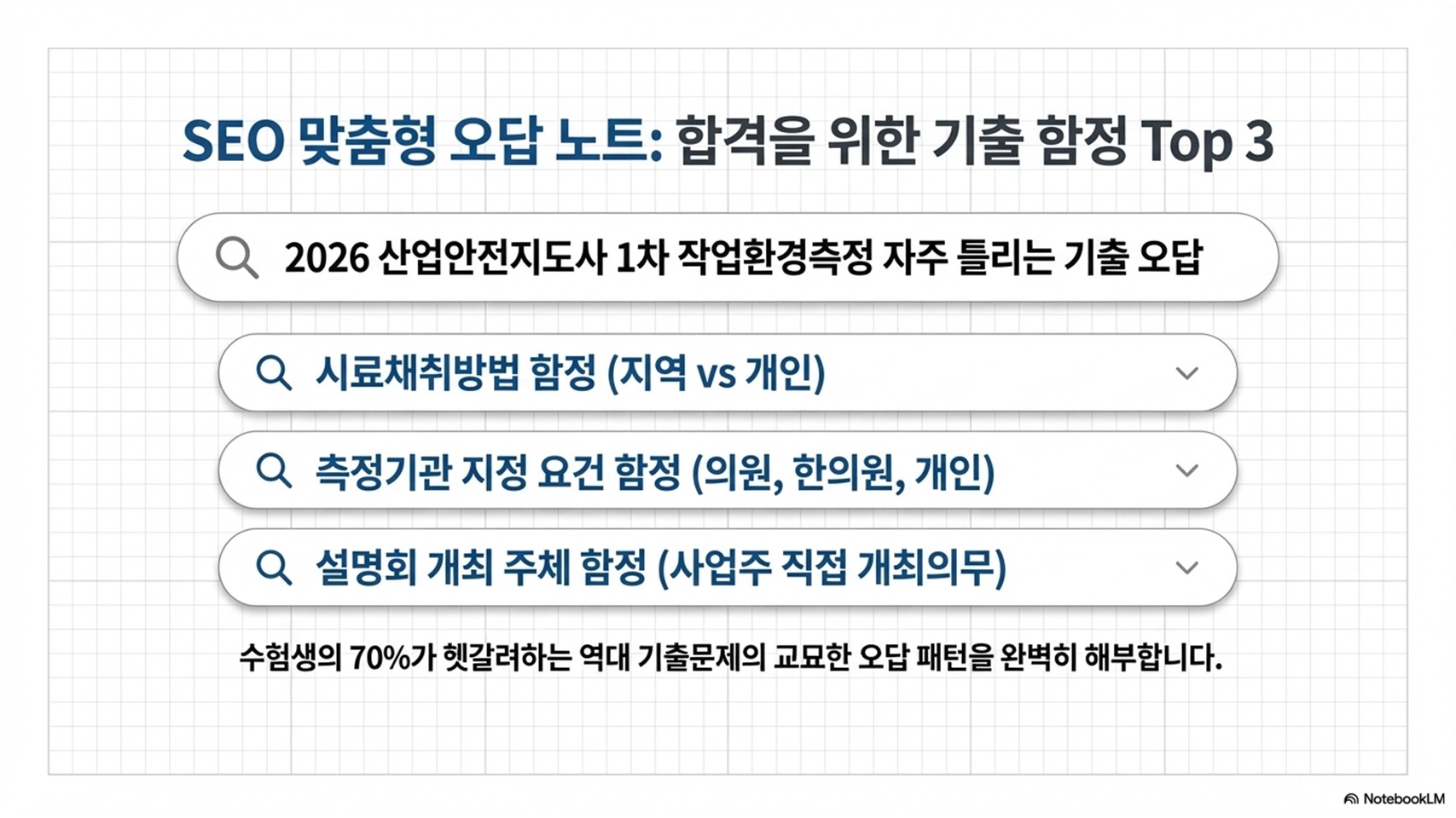 산업안전지도사 1차 시험 빈출 5위! 작업환경측정 원칙, 시료채취 방법, 측정기관 지정 요건 및 단골 오답 함정까지 2013~2025년 기출 데이터를 바탕으로 완벽하게 정리해 드립니다.