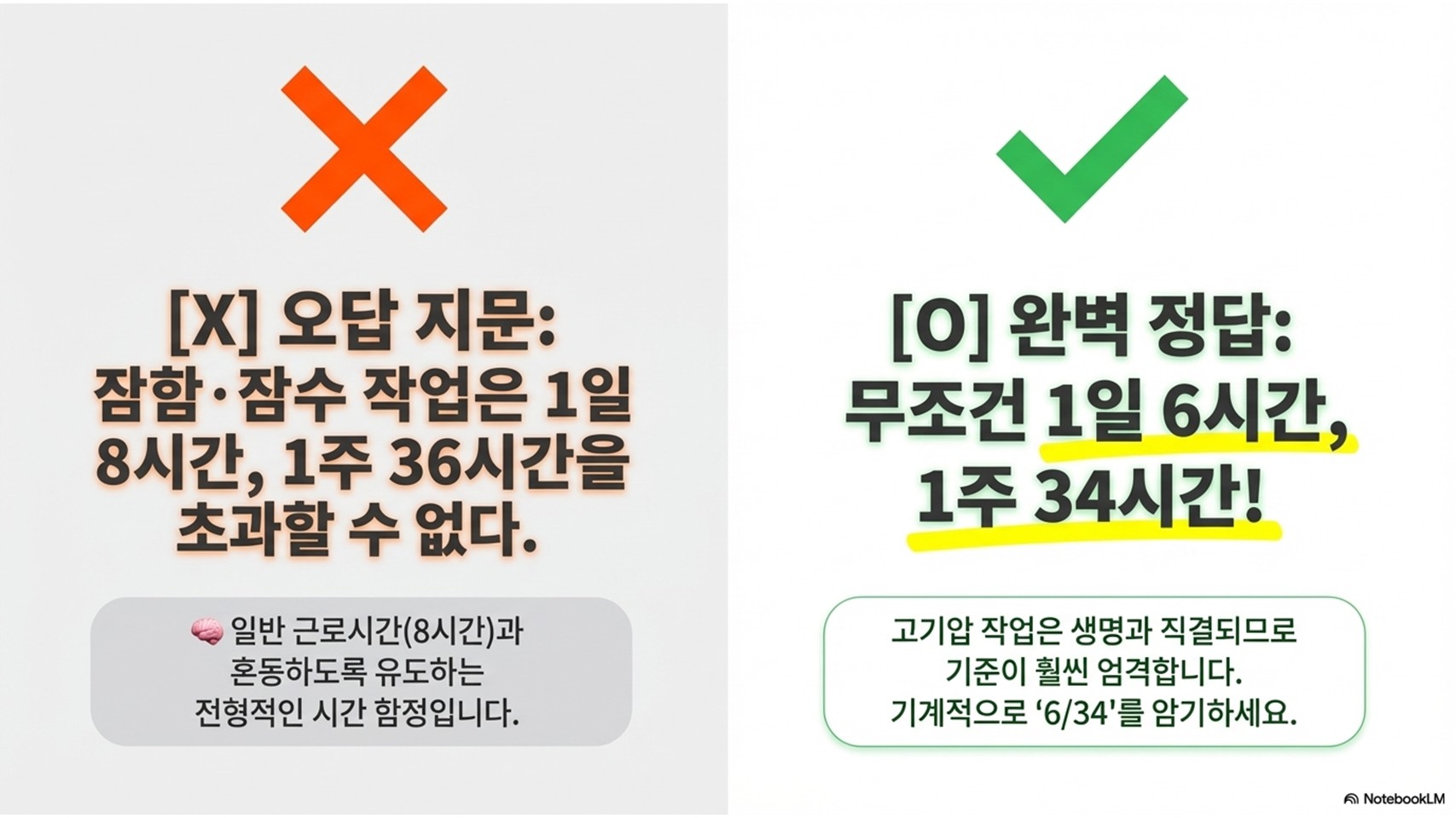 사업주는 근로자의 상태에 따라 근로를 제한할 법적 의무가 있습니다. 특히 고기압 작업의 '6/34 법칙'은 이 파트의 주인공입니다.