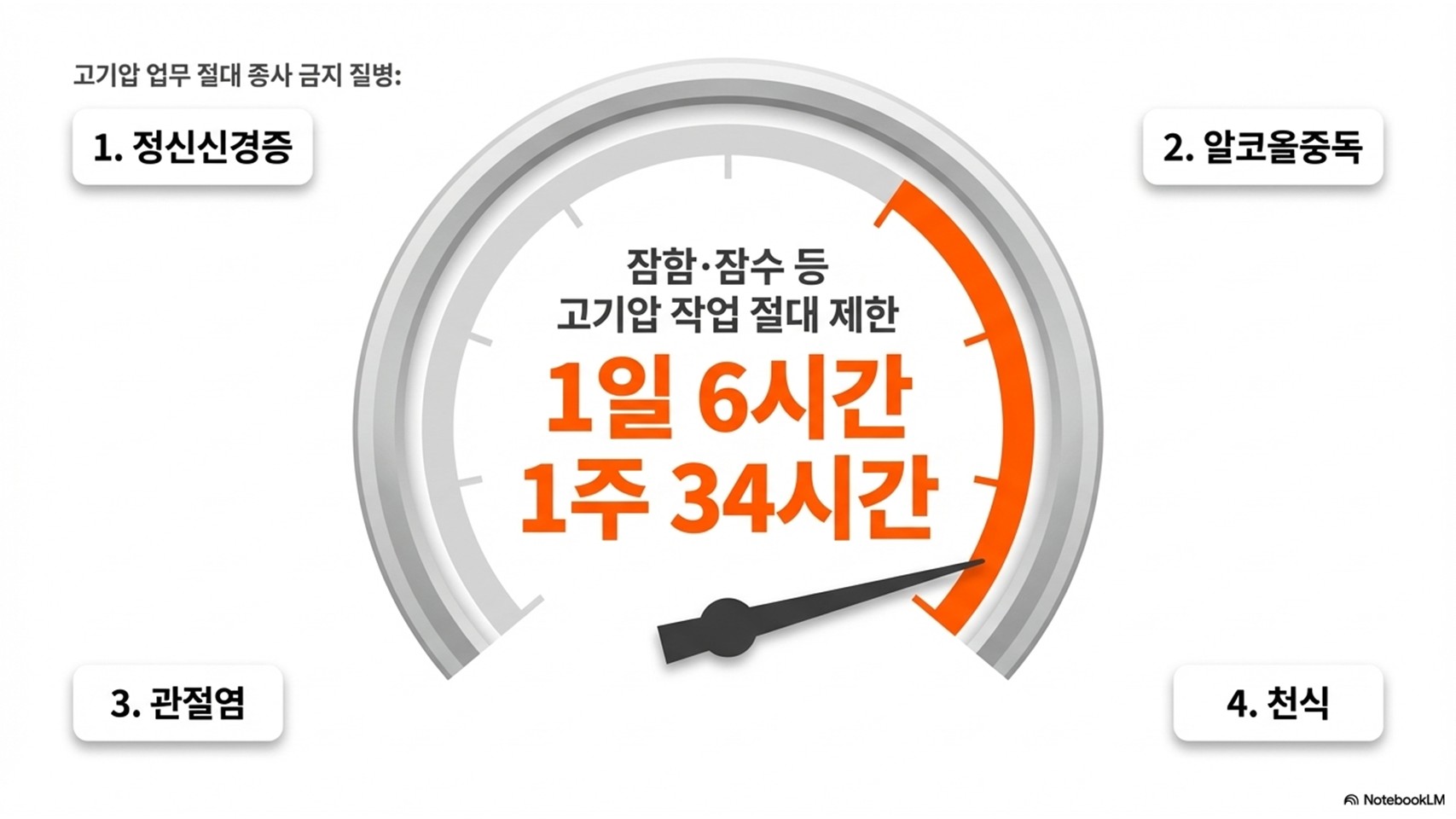 [H2] 4. 질병자의 근로 금지 및 고기압 작업 근로시간 제한 (6/34 법칙)