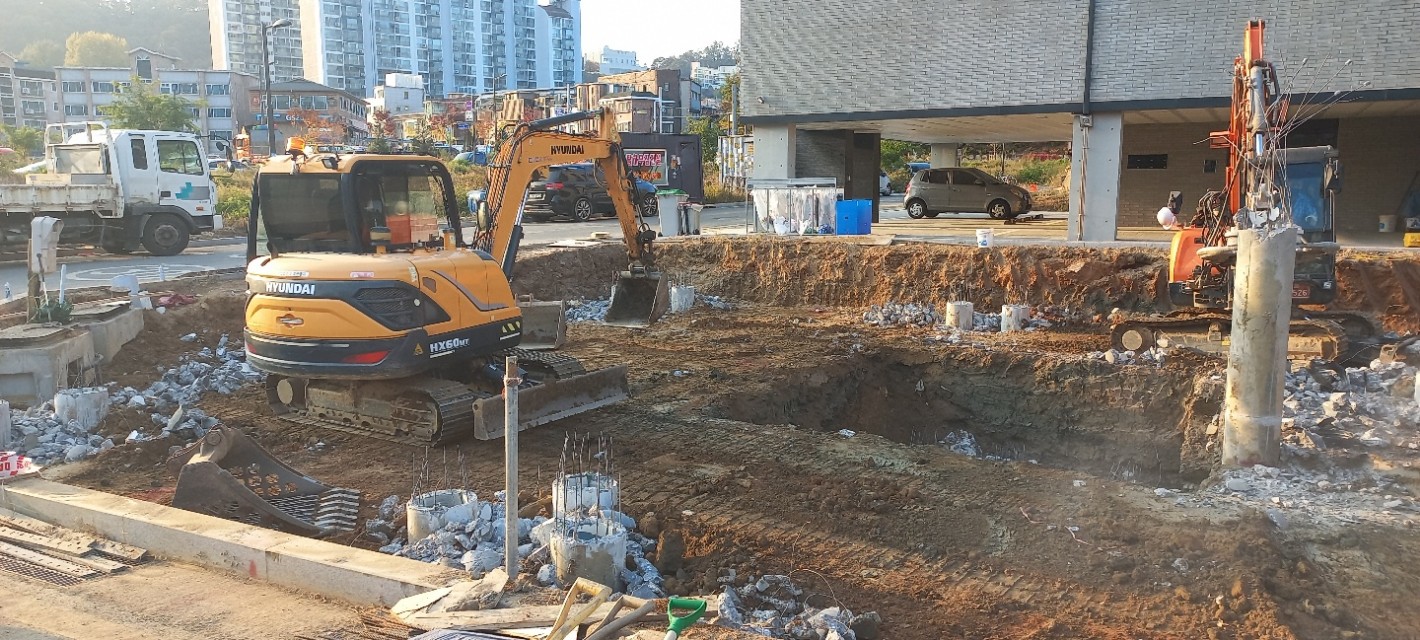 하지 않을 경우 건축물의 지내력 확보가 어렵다는 결론이 나와 기초 파일을 추가 시공해야 되었다.