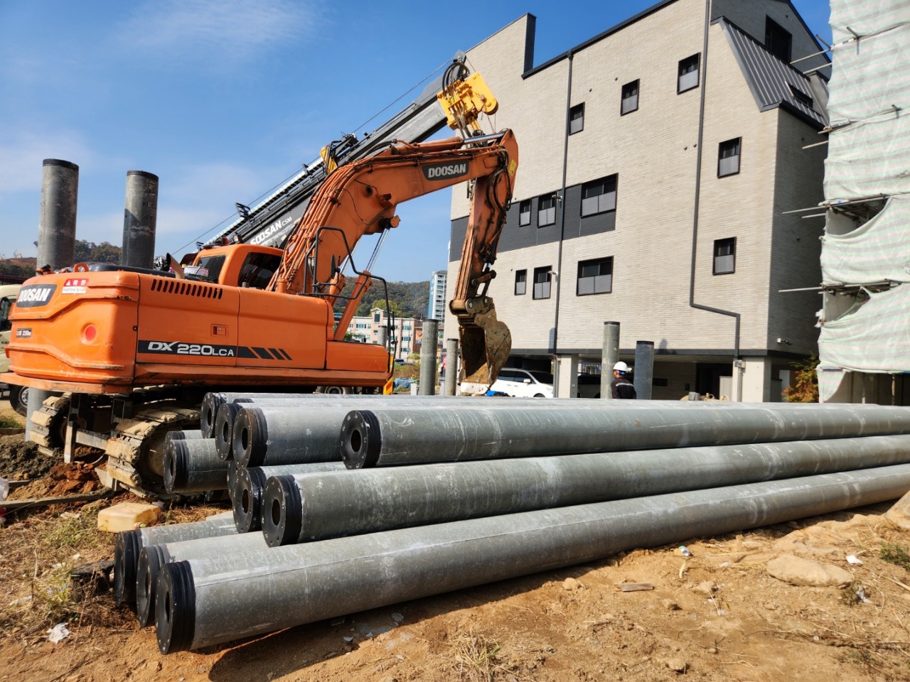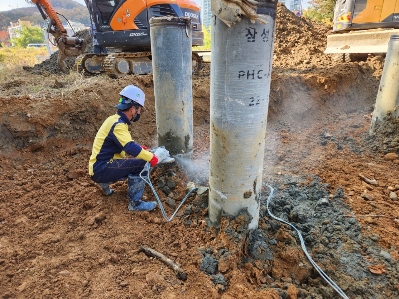 파일을 종류로는 크게 기성콘크리트 말뚝(PHC)을 많이 사용한다.