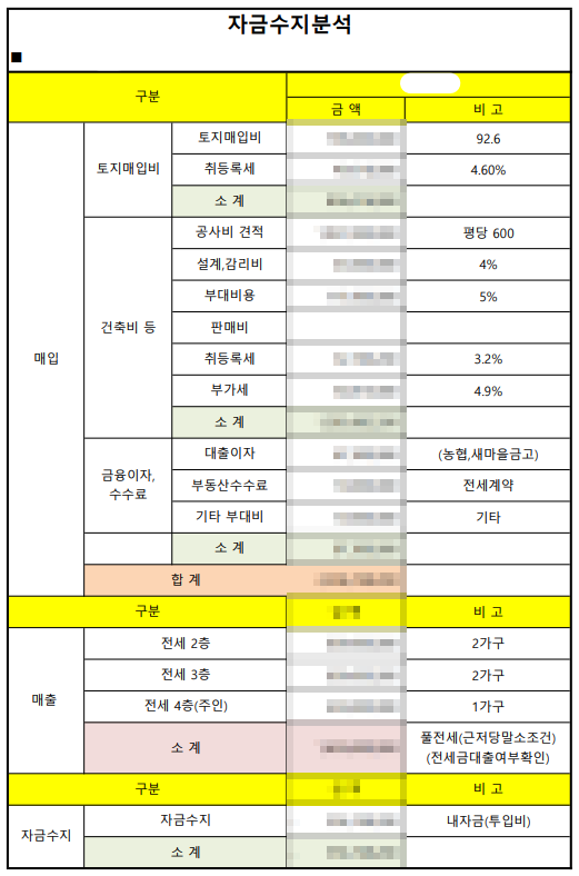 다가구 신축사업을 진행하기위해서 토지매입을 진행할경우 반드시 사업수지분석은 필수라 할수 있다.