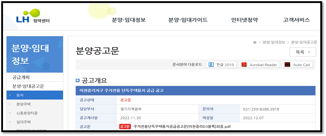 상기의 그림과 같이 한국토지주택공사(LH)나 경기도시공사,인천도시공사등의 사이트에 접속하여 토지 매각 공고를 확인한후 내가 관심있는 지역의 토지 매각공고를 확인하여 입찰 참가 여부를 결정한다.