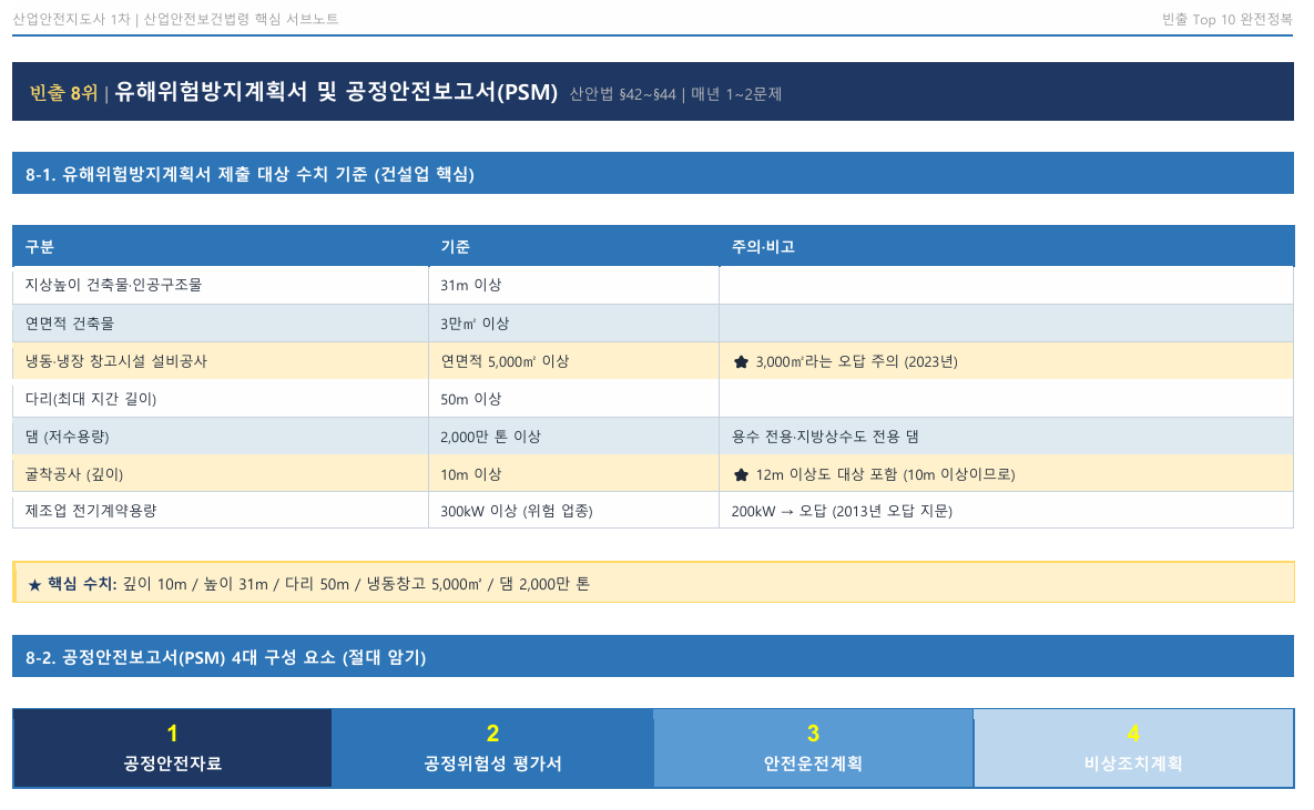 9. TOP 8: 유해위험방지계획서 및 공정안전보고서(PSM) (산안법 제42조~제44조)