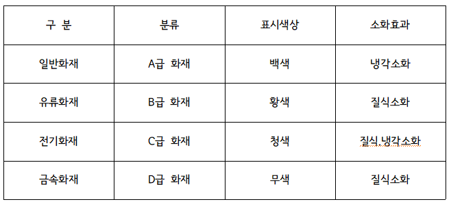 화재의 종류에 따른 소화방법