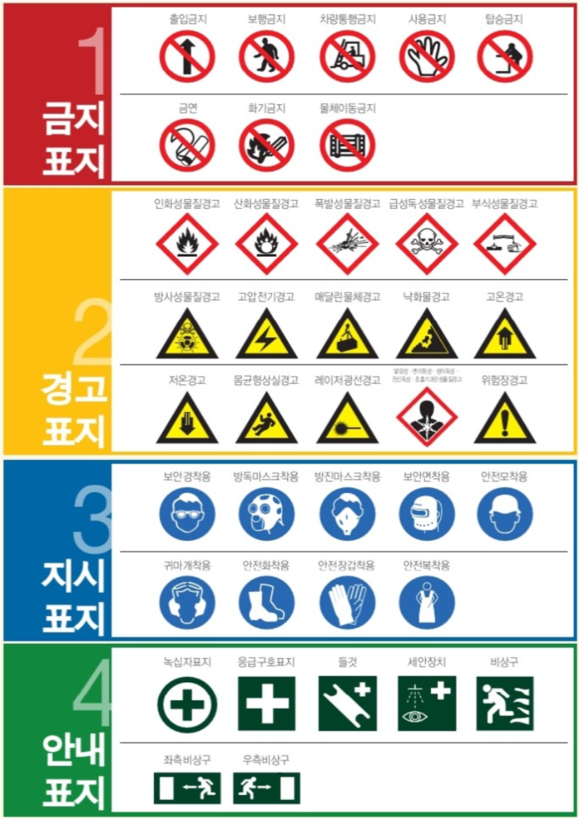 산업안전보건법 시행규칙 별표7 (안전보건표지의 종류별 용도, 설치,부착장소 형태 및 색채)