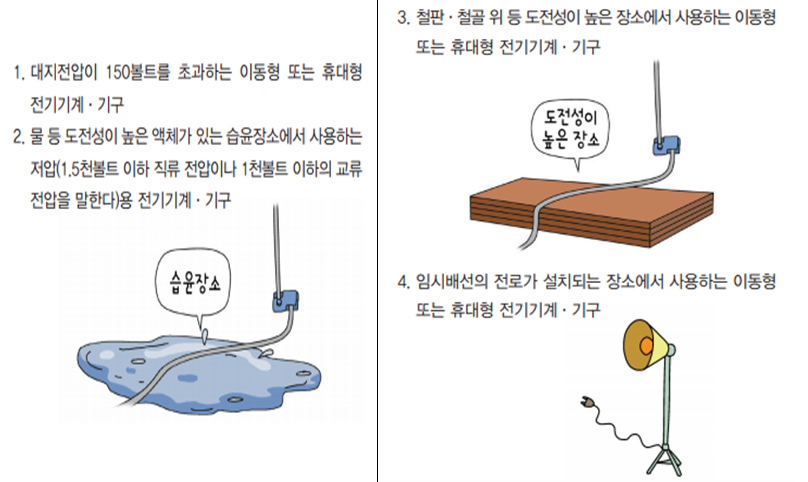 1. 대지전압이 150볼트를 초과하는 이동형 또는 휴대형 전기기계ㆍ기구