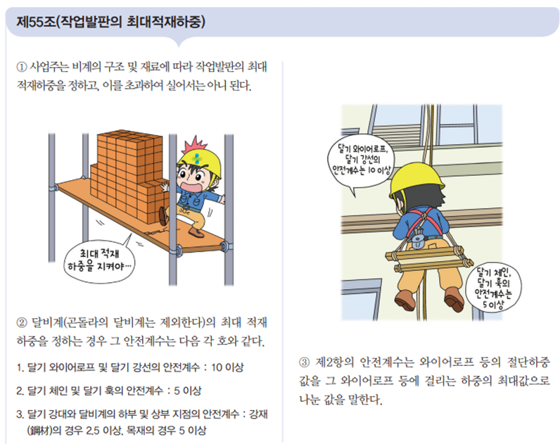 산업안전보건에관한 규칙 제 55(작업발판의 최대 적재하중)