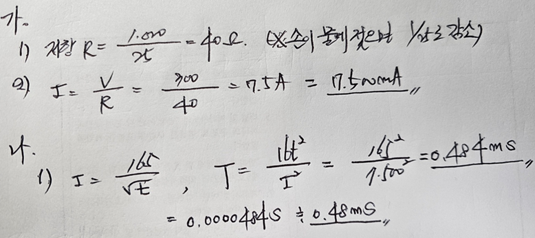 | ① 심실세동전류(mA) : 7500mA ② 통전시간 : 0.48mA |