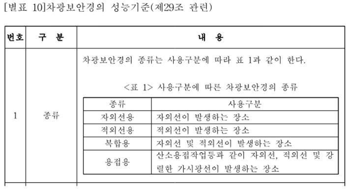 | ① : 자외선용 ② : 적외선용 ③ : 복합용 ④ : 용접용 |