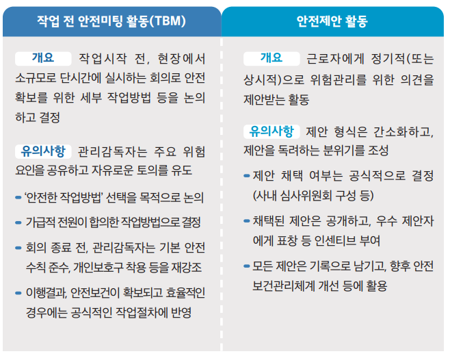 - 근로자 : 모든 구성원들이 '안전보건'에 대한 의견을 자유롭게 제시할수 있어야 합니다.