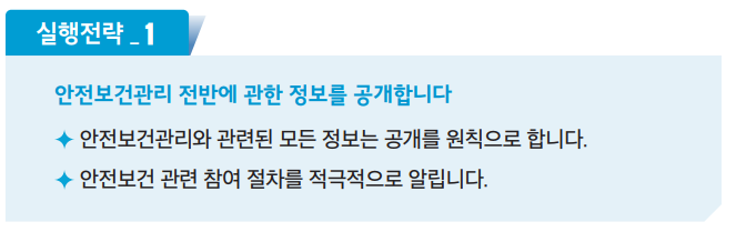 - 근로자 : 모든 구성원들이 '안전보건'에 대한 의견을 자유롭게 제시할수 있어야 합니다.