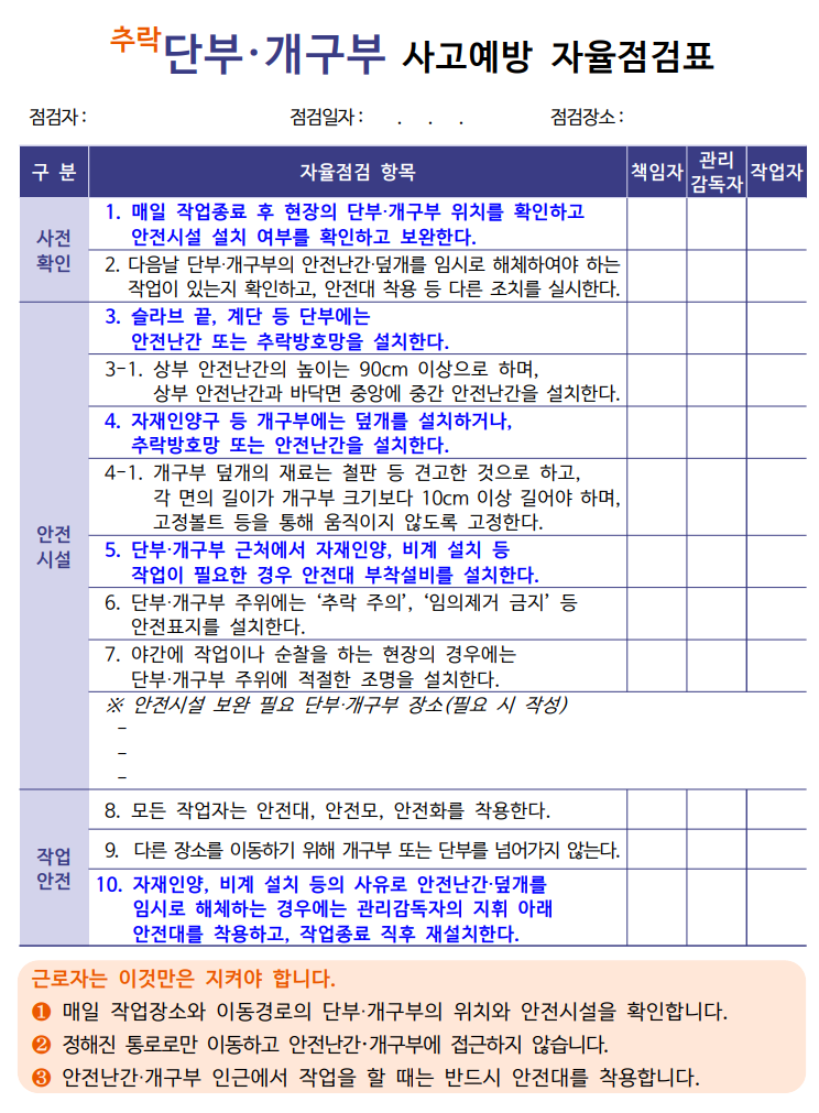 "건설현장 중대재해 예방을 위한 사망사고 핵심 위험요인 자율점검표"