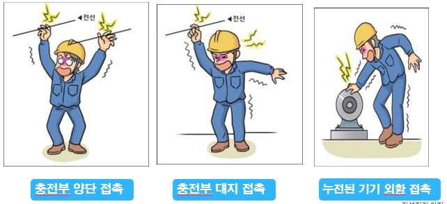 - 전기기기 및 배선등 모든 충전부는 노출금지