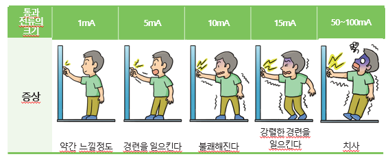 - 인체를 통한 전류의 크기가 클수록 위험이 증가