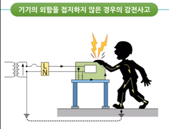 - 피복이 벗겨진 전선이나 기기외함에 접촉