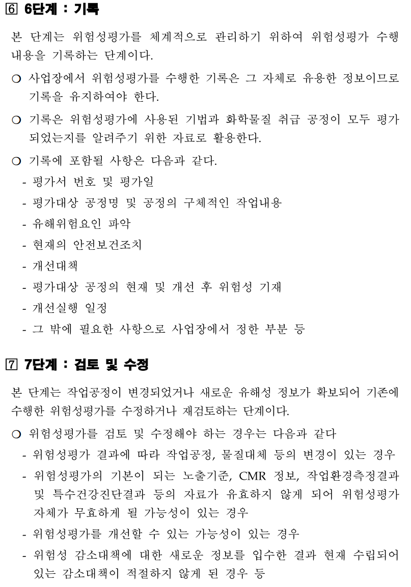 - 화학물질의 유해성 및 노출수준과 연계한 종합적인 화학물질 위험성 평가 도구가 마련되어 있지 안하 화학물질로 인한 근로자 건강보호에 어려움이 있었다.;