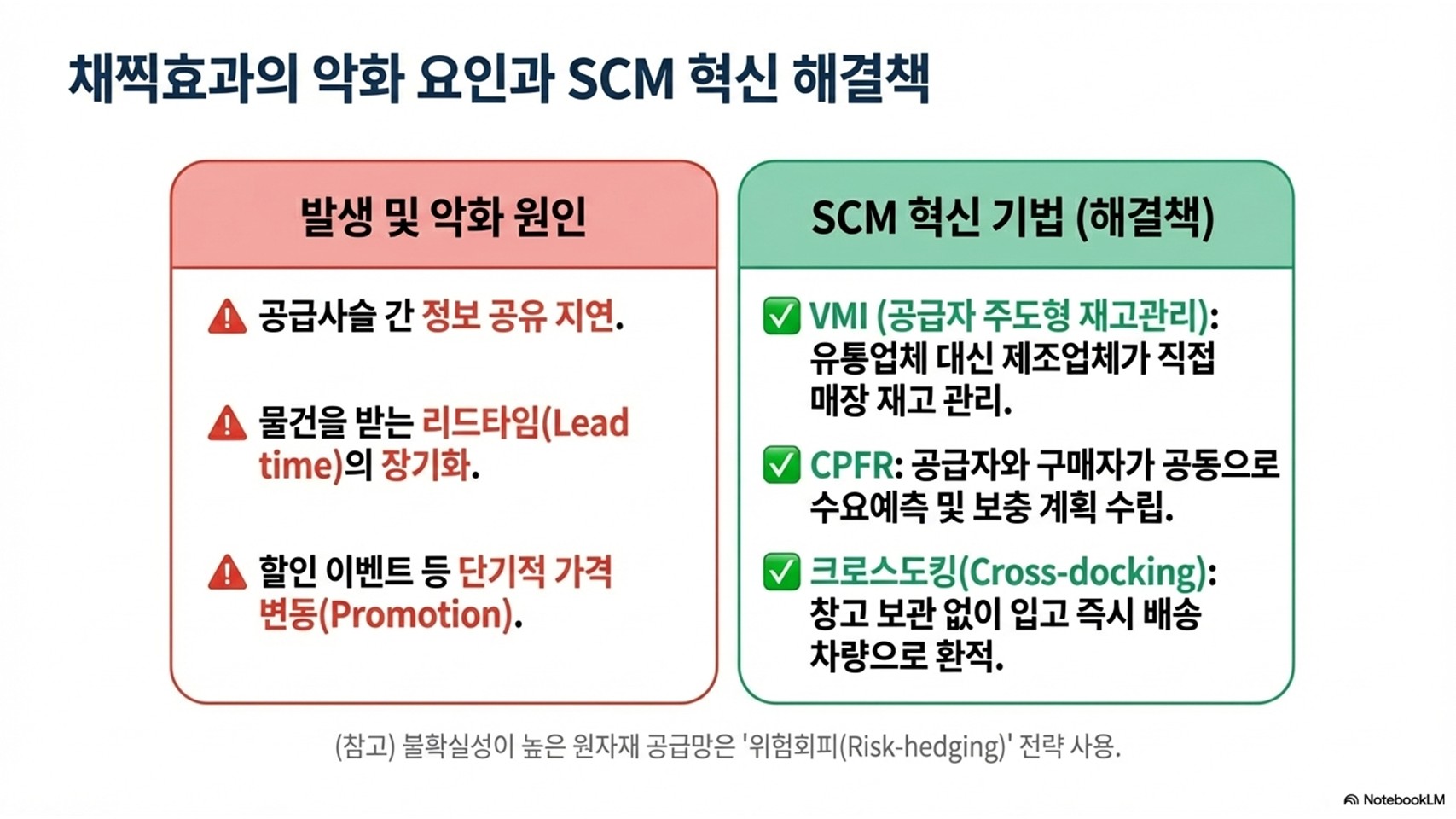- 악화 요인: 정보 공유 지연, 긴 리드타임, 가격 할인(판촉 활동) 등.